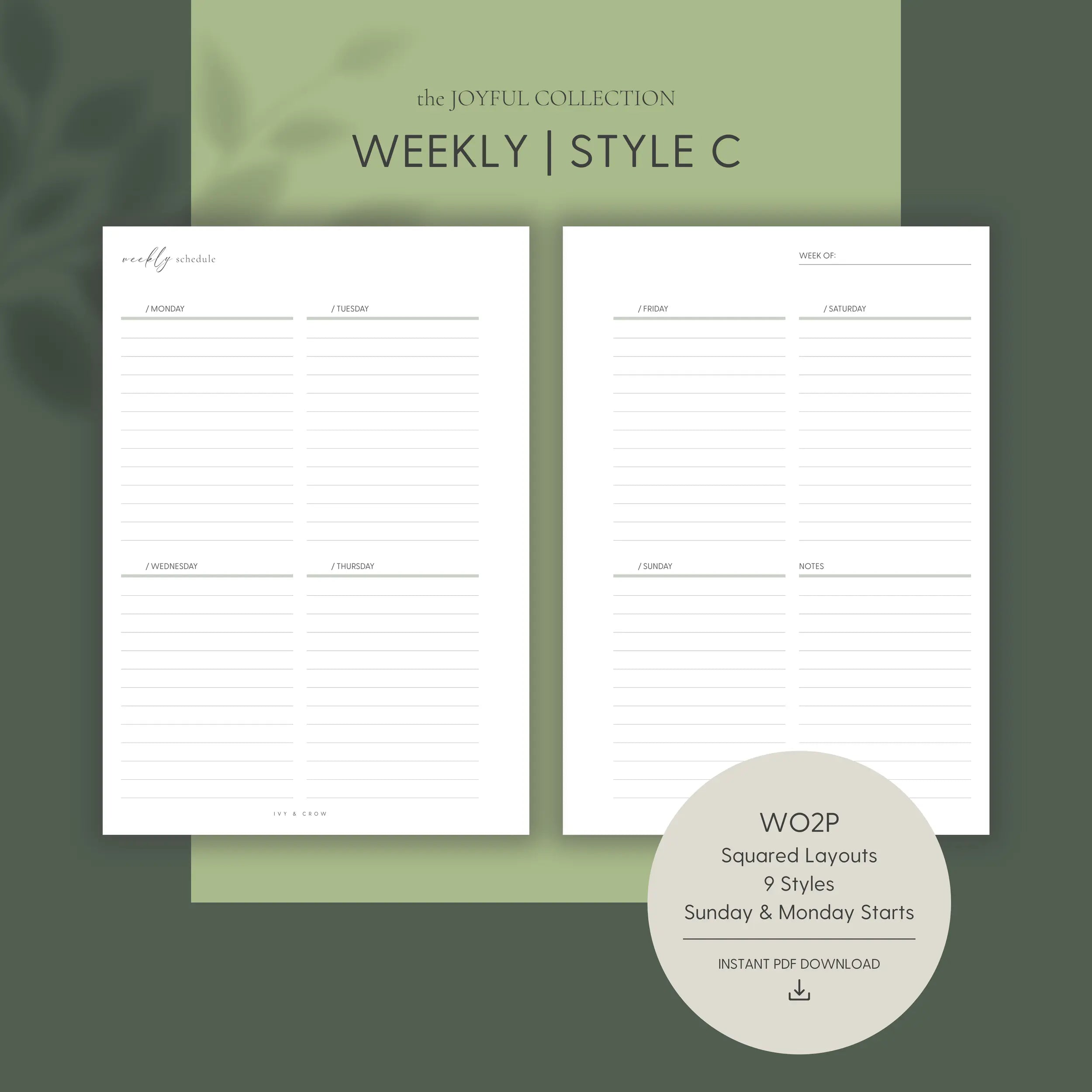 This is a DIGITAL FILE. No physical product will be sent. Files will be available for download immediately after purchasing. Listing is for JOYFUL Weekly | Style C | Squared only; other pictured items are not included.