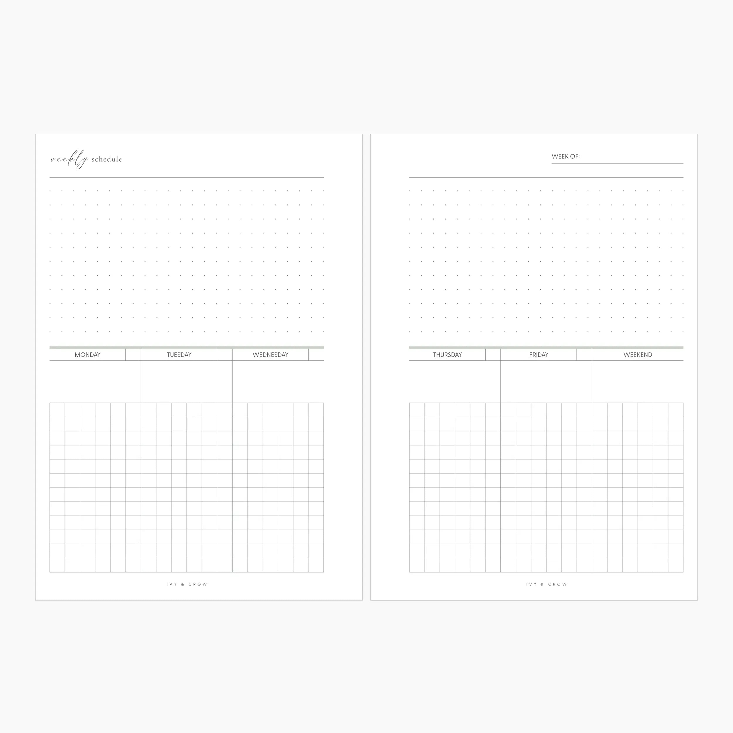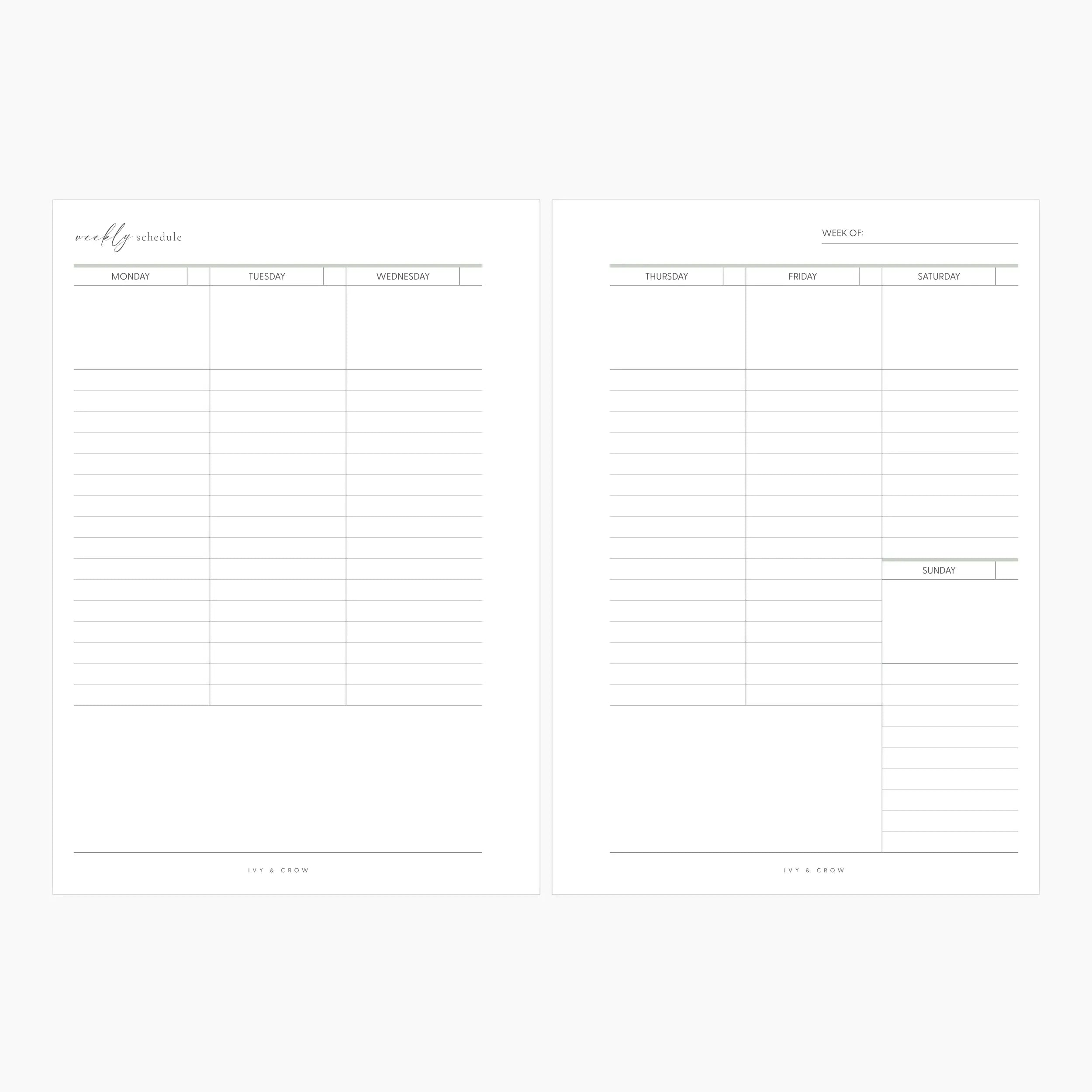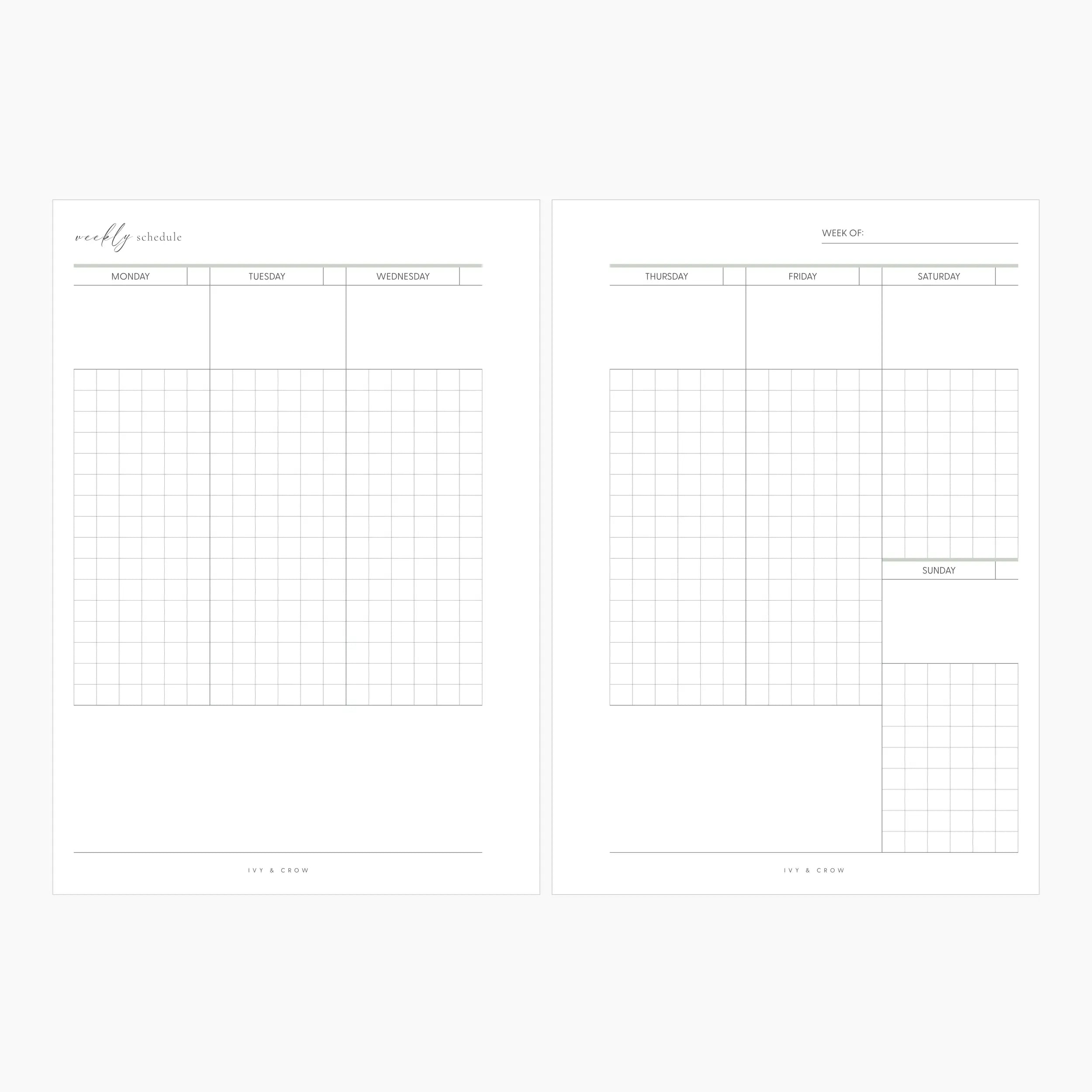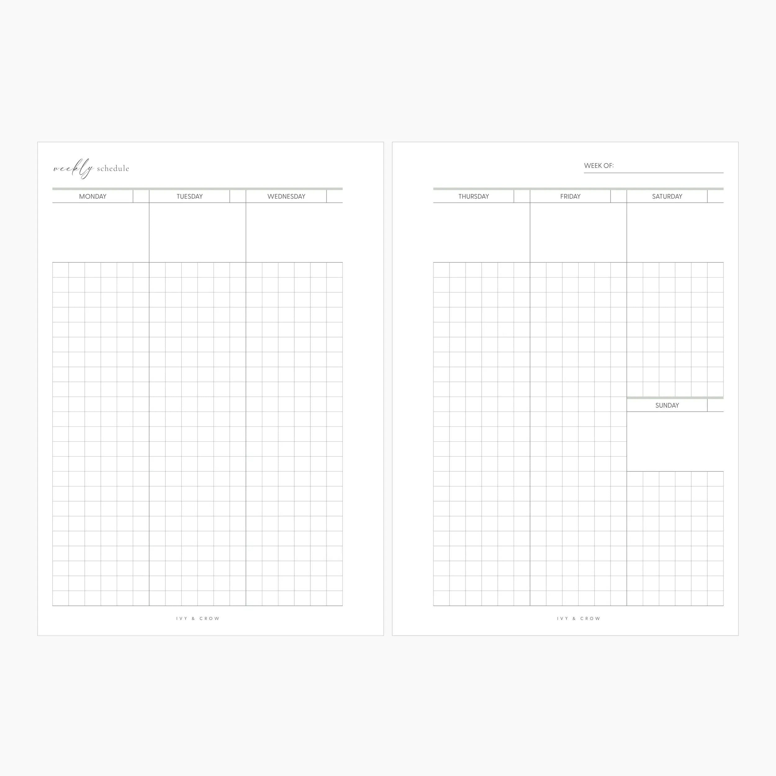These undated weekly inserts can be printed back to back or separately and paired with our Weekly Organization and Personal Care inserts.
